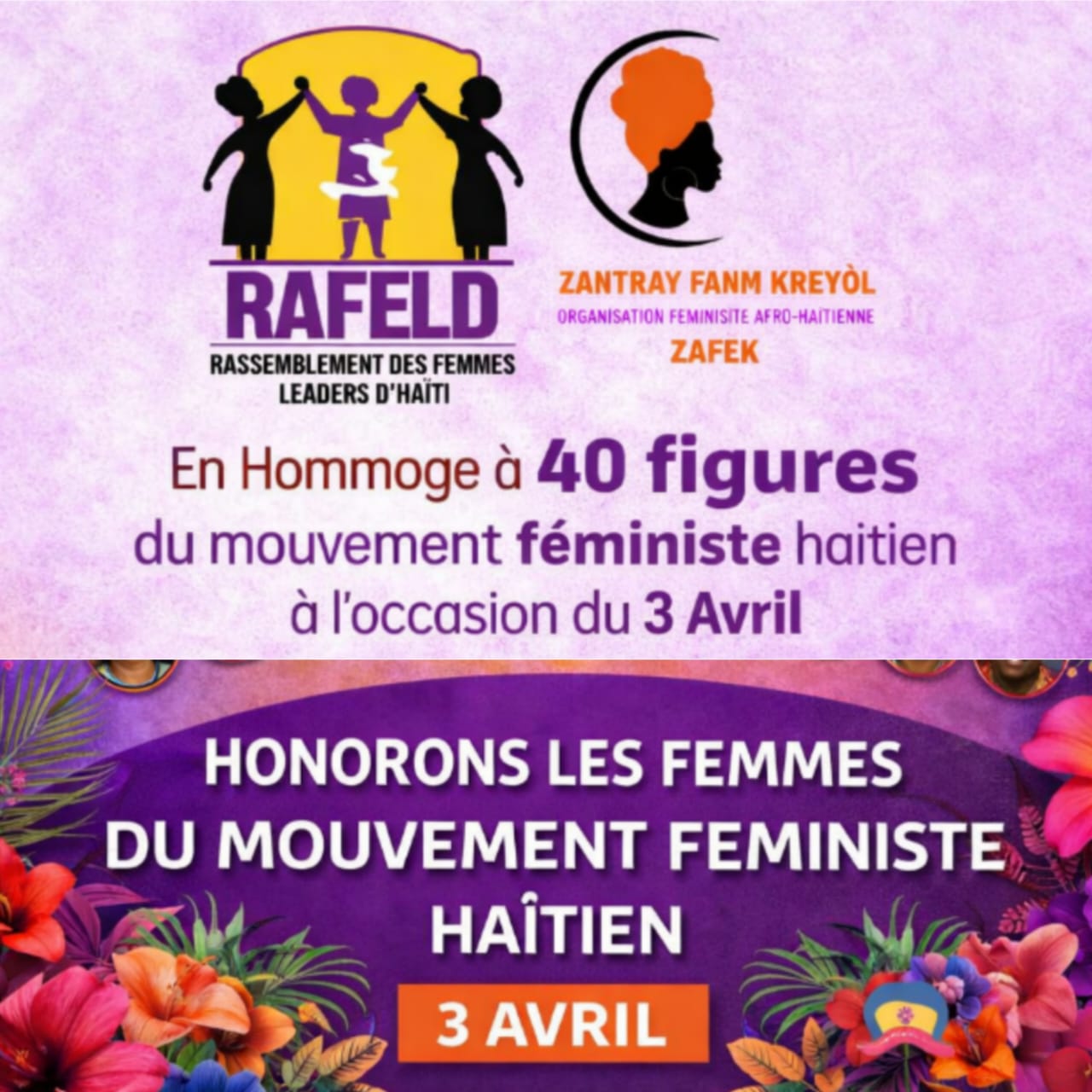 À l’occasion de la Journée nationale du mouvement des femmes haïtiennes, célébrée le 3 avril, Rassemblement des Femmes Leaders d’Haiti (RAFELD) et Zantray Fanm Kreyòl saluent avec force et conviction des femmes d’exception dont l&rsquo...